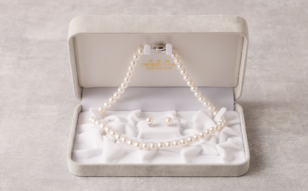 厳選された、照り・巻ともに良質の本真珠のネックレスとピアスです。