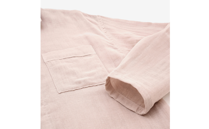 ガーゼの柔らかい肌さわりをいかし、赤ちゃんの肌着から大人の方のナイティまで、ゆとりあるラインで体をやわらかくつつみこむデザインにしています。