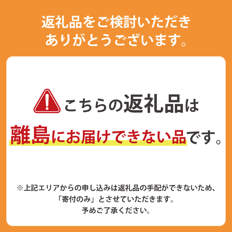 ※離島からの申し込みは返礼品の手配ができないため、「寄附のみ」とさせていただきます。予めご了承ください。