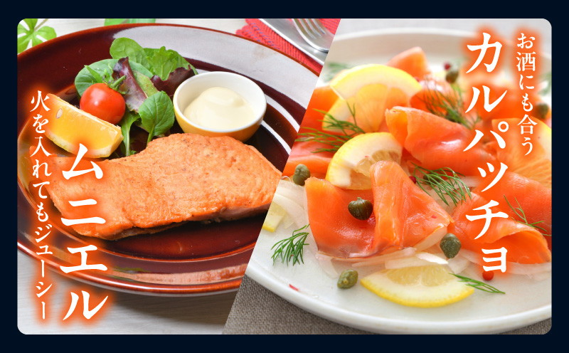 ムニエル・ソテー・フライなど、火を通しても美味しいですが、まずは「生食」で、海外産のサーモンとは一味違う、繊細な味わいをご堪能下さい。