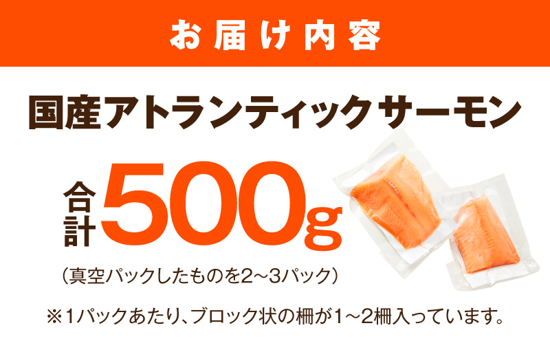 国産サーモン 500g(真空パックしたものを2-3パック)