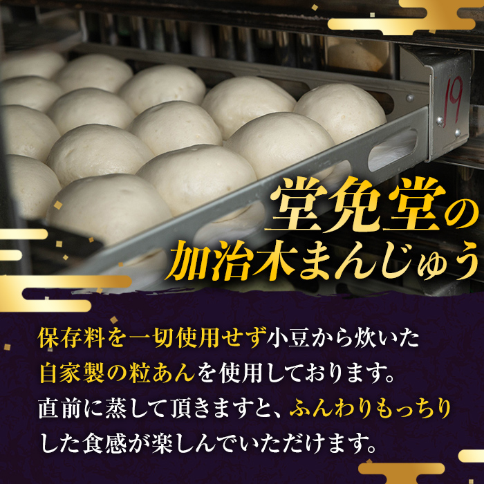 姶良市地域には加治木饅頭の製造業者が6店舗ありますが、当店の加治木饅頭は保存料を一切使用せず小豆から炊いた自家製の粒あんを使用しております。