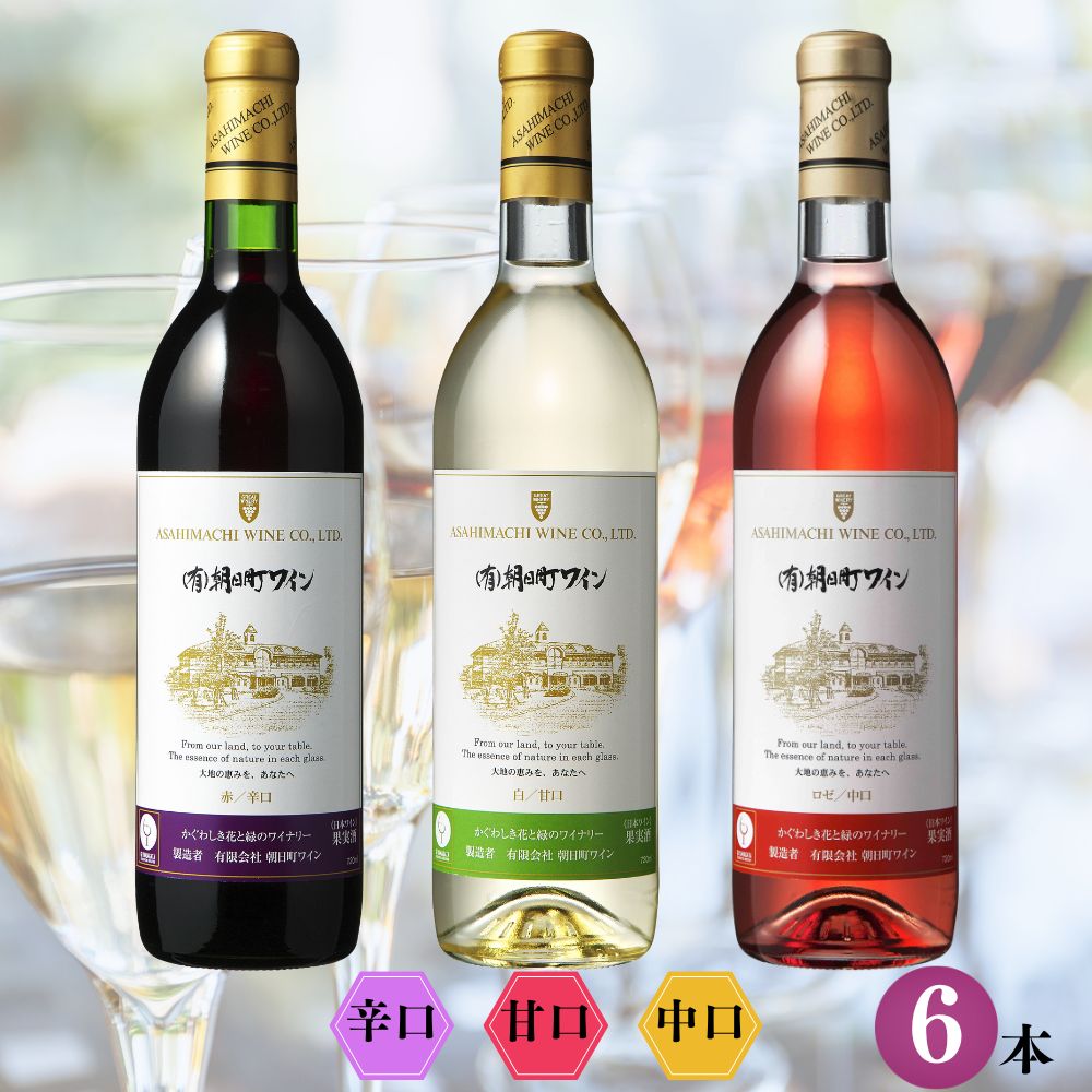 (有)朝日町ワイン 赤・白・ロゼ 各2本 合計6本(720ml×6)