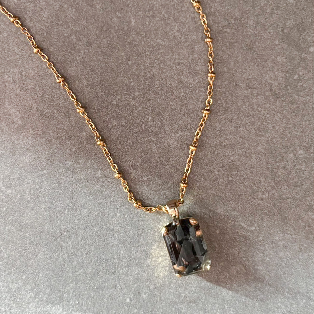 ゴールドカラーのスクエアネックレス。