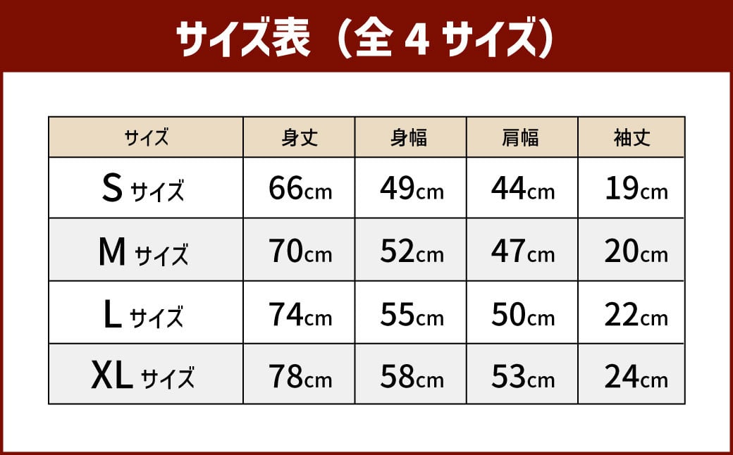 ・Mサイズ:身丈 70cm/身幅 52cm/肩幅 47cm/袖丈 20cm