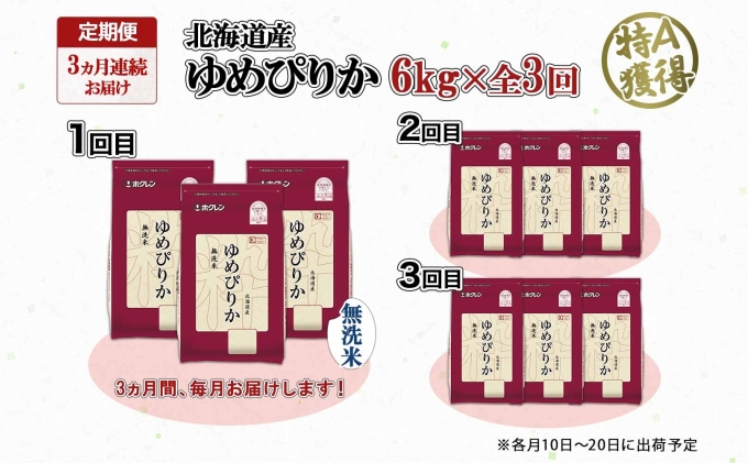 北海道の特A米『ゆめぴりか』無洗米 6kg(2kg×3袋)×全3回をお届けします。