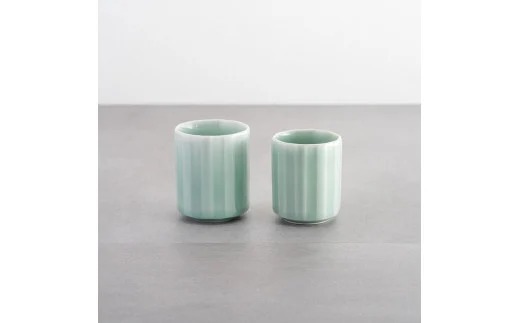 <素材> 磁器/青磁 <容量> 大 約170t 小 約120t <重さ> 大 約230g 小 約190g <サイズ> 大 口径:7cm 高:8.6cm 小 口径:6.4cm 高:8cm