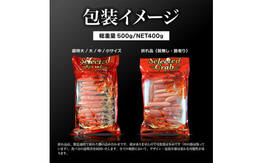 - 400g(総重量500g) ※品質保持の氷の膜を含む 【原材料名】 ずわいがに(ロシア産)/酸化防止剤(V.C)、クエン酸