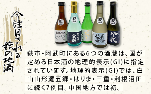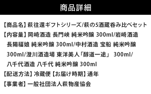 「萩の5酒蔵飲み比べセット」は、萩の5つの酒蔵の純米吟醸相当酒を飲み比べできるセットです。