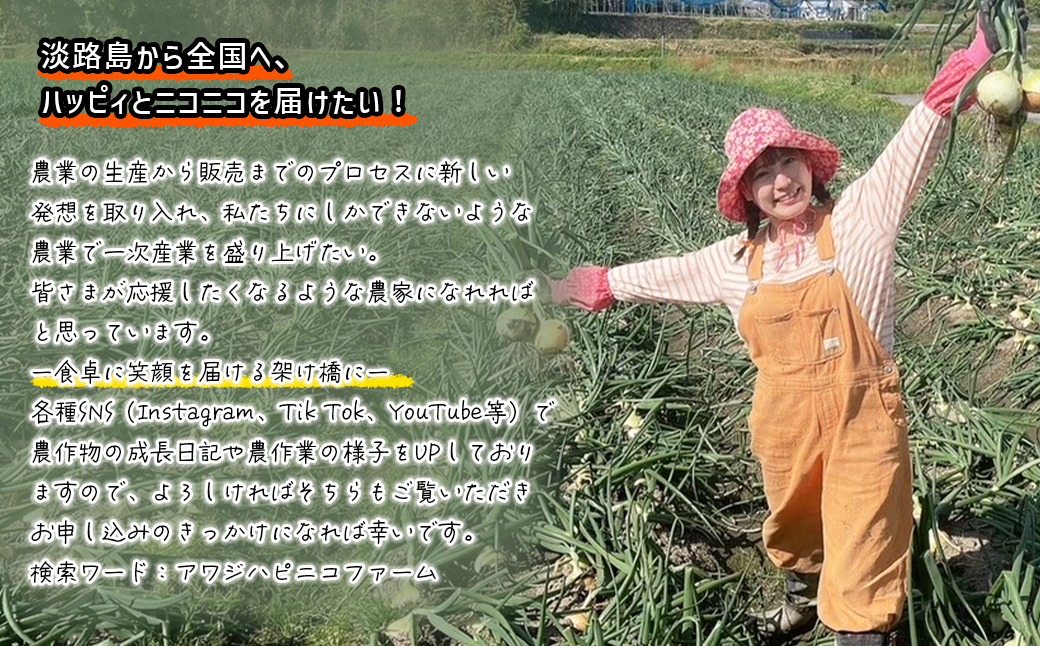 淡路島という海に囲まれたミネラル豊富な土壌と、温暖な気候に恵まれた環境で、こだわりと愛情を人一倍かけて、育てている新玉ねぎです。