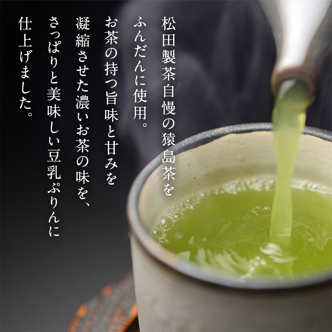 お茶の持つ旨味と甘みを凝縮させた濃いお茶の味を、さっぱりと美味しい豆乳ぷりんに仕上げました。 お茶好きなあなたにおすすめの逸品です。