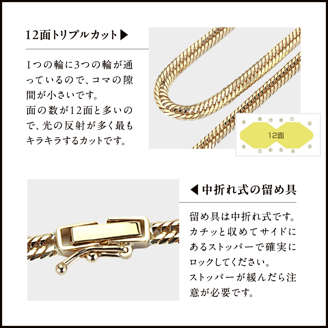 k18製 喜平トリプル12面 50cm 12g 造幣局検印ありネックレスです。