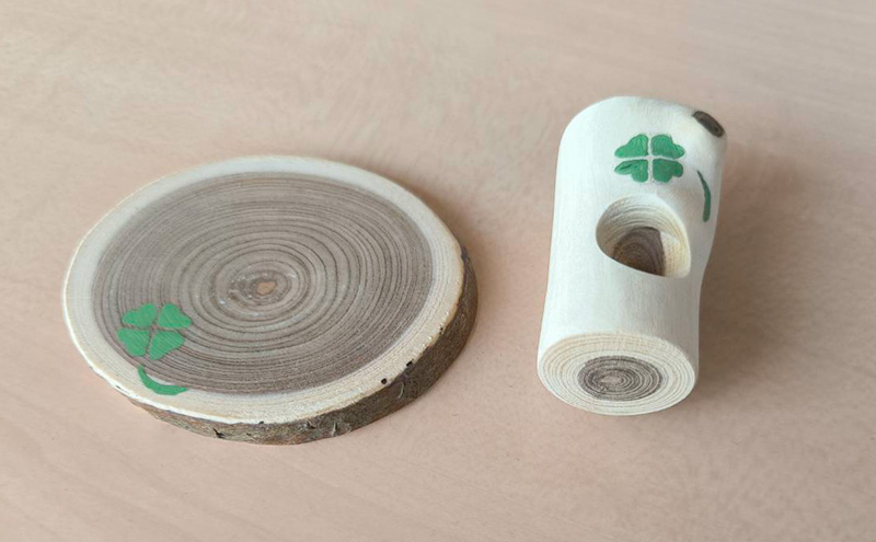 仕上:無塗装、四つ葉のクローバー入り