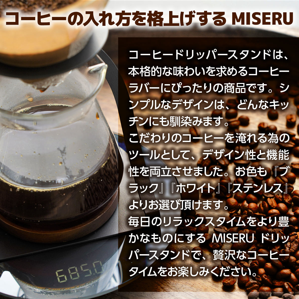 毎日のリラックスタイムをより豊かなものにするMISERUドリッパースタンドで、贅沢なコーヒータイムをお楽しみ下さい。