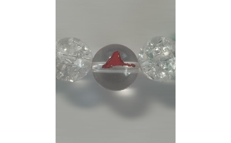 茅ヶ崎の象徴「サザンビーチ」と「えぼし岩」をテーマに海の織りなす美しさを3種の天然石で表現したブレスレットです。真ん中の白水晶には、えぼし岩を赤で刻印してあります。