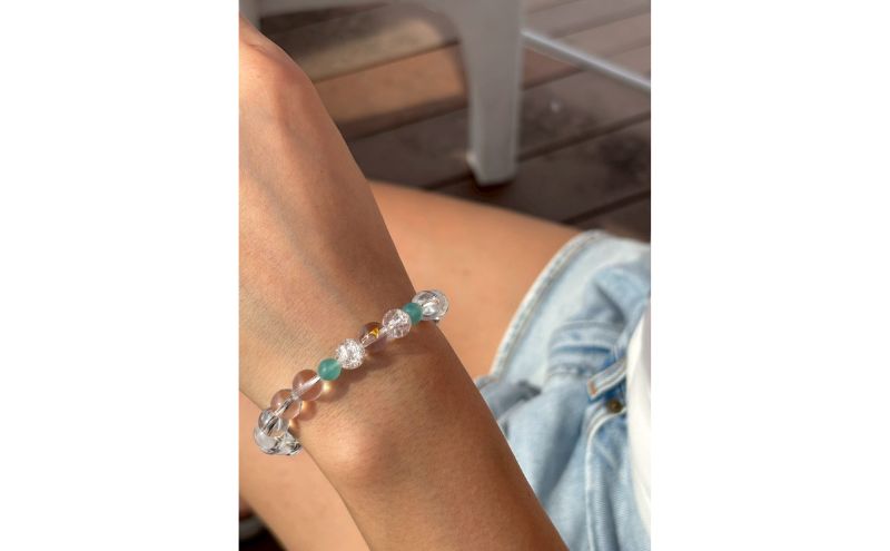 白水晶8mm×19、ブルーカルセドニー6mm×2、クラッククオーツ8mm×2 18cm