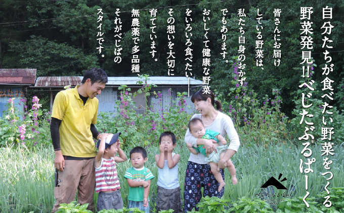 べじたぶるぱーくは年間約60種類程度のお野菜を栽培期間中農薬や化学肥料に頼らずに育てています。