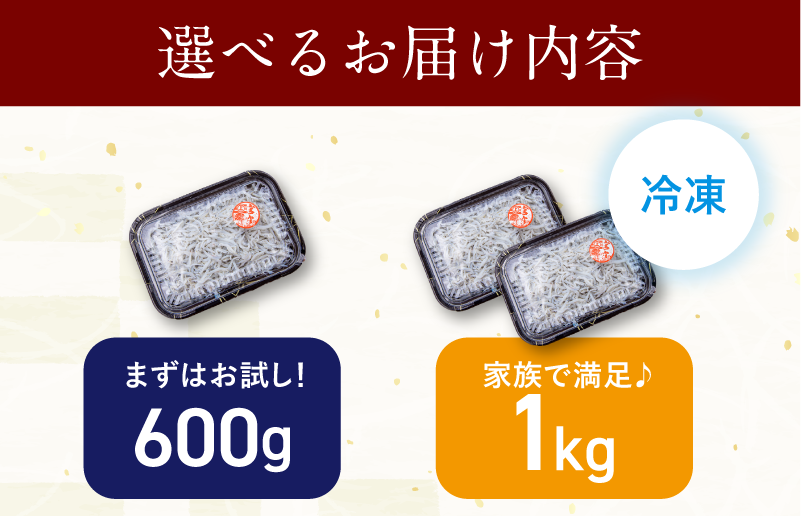 宮窪の漁師が獲った「釜揚げシラス」選べるグラム数<満腹セット600g(冷凍真空包装200g×3袋)>