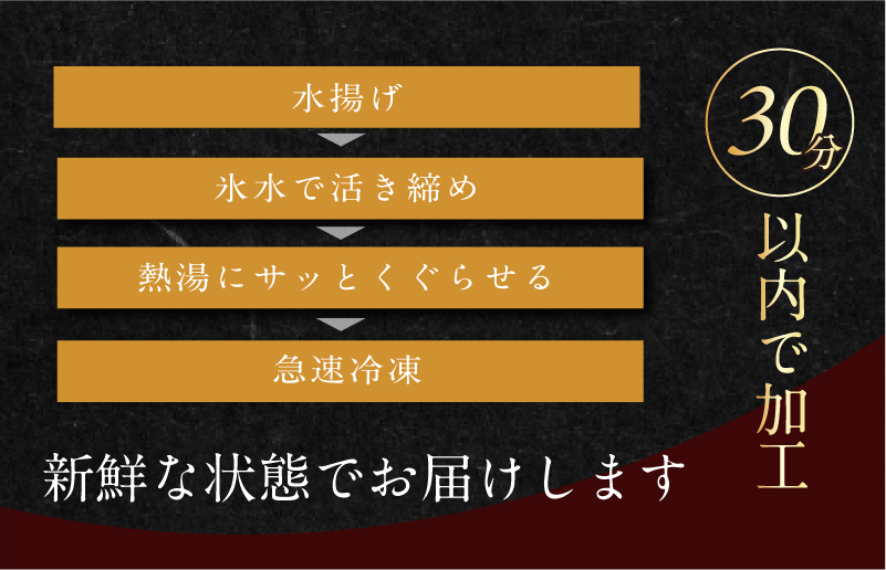 銀色に輝く鮮度そのまま、氷水で活き締めし、30分以内に加工しました。