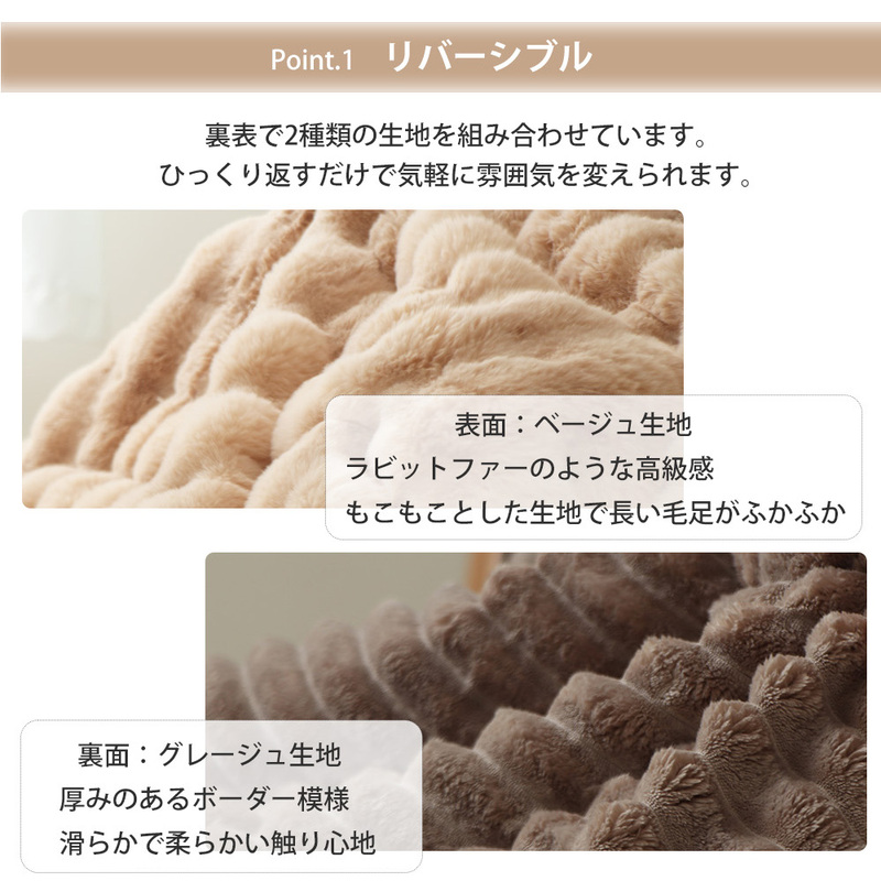 1枚で2種類の異なった触り心地を味わえるリバーシブルタイプのこたつ掛布団です。