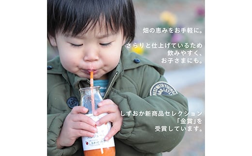 しずおか新商品セレクション金賞を受賞、味が良くて飲みやすく、風邪をひいた時などの体調維持で飲んでいただいています。「離乳食として赤ちゃんが最初に口にしました。」といったうれしいお便りもいただいています。
