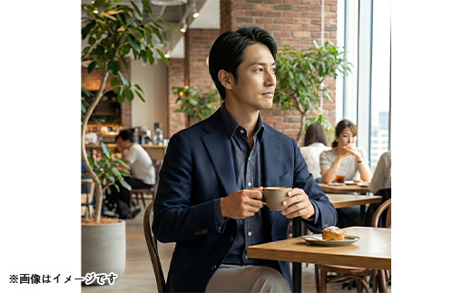 高めの襟に深めのVゾーンで、ネクタイなしでもスタイリッシュに決まる大人のイケシャツとしてデザインし、発売と同時にとても好評です。