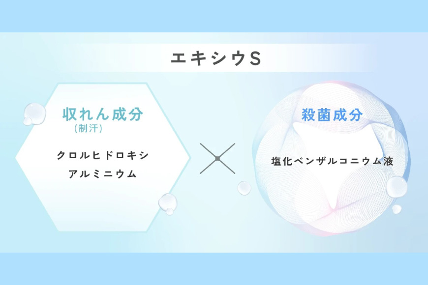 特製エキシウクリームは、汗を抑える成分を4種類配合し、汗とニオイを抑える濃厚クリームタイプです。