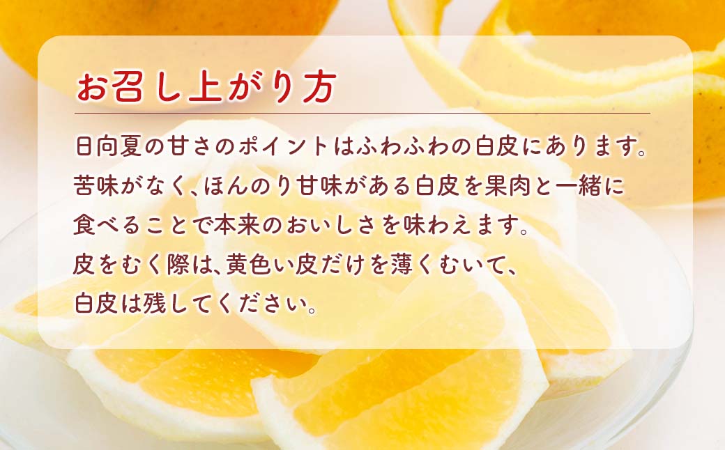 甘味・酸味がベストな状態となるまで待って収穫しており、通常の日向夏より甘味が強く、生産農家も少ない希少な日向夏です。
