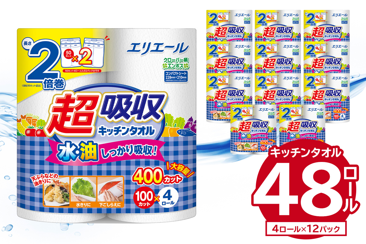 エリエール超吸収キッチンタオル(100カット) 4ロール×12パック