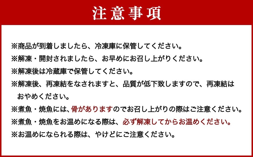 ※煮魚・焼魚には、骨がありますので、お召し上がりの際はご注意ください。