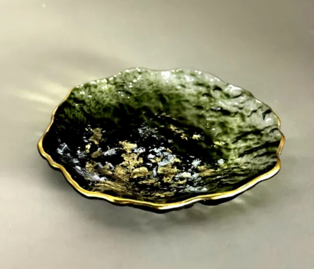 ガラスの裏面から漆を意匠していますので、表面はガラスであるため従来の漆器では使用不可能とされていたカトラリーの使用が可能な斬新なアイテムです。