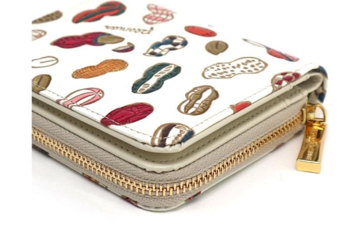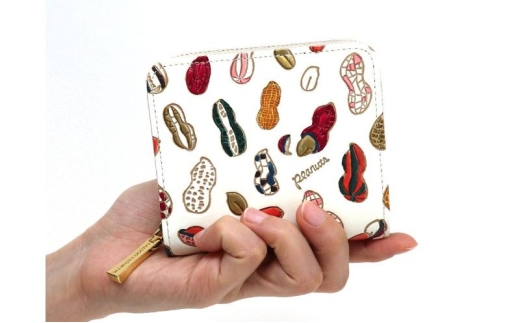 【文庫屋大関】二つ折りファスナーミニ財布 ピーナッツ【皮革工芸品】財布 二つ折り 小物 お札 カード 小銭 コンパクト 牛革 手作り 日本製 墨田区 東京都 [№5619-2055]