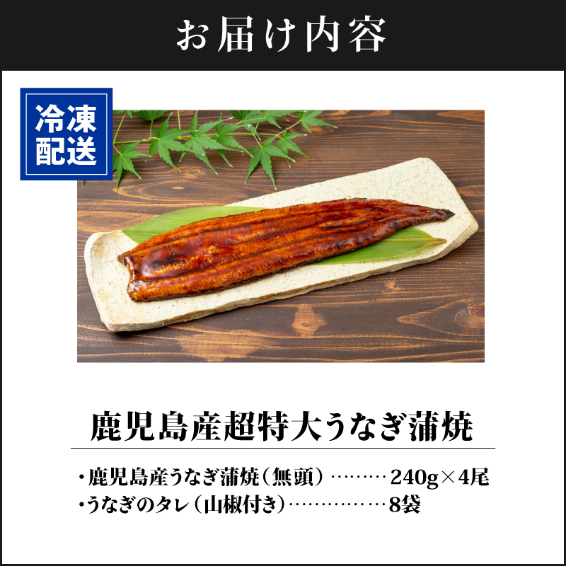 ・鹿児島産うなぎ蒲焼(無頭) 240g×4尾