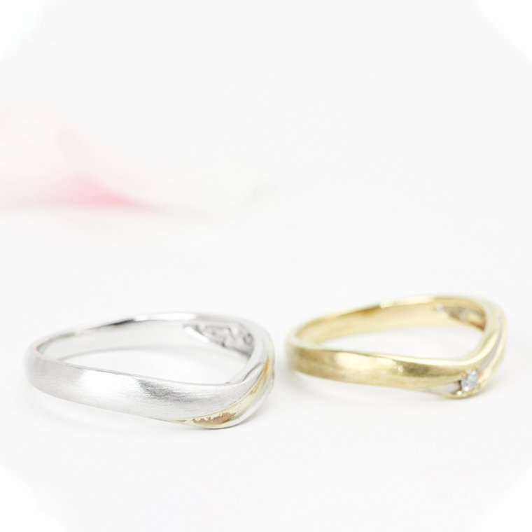 ●18wg製リング(約4.3g)幅3.5mmバージョンあるいは●18yg製リングダイヤ入り(約2.1g)幅3mmバージョン