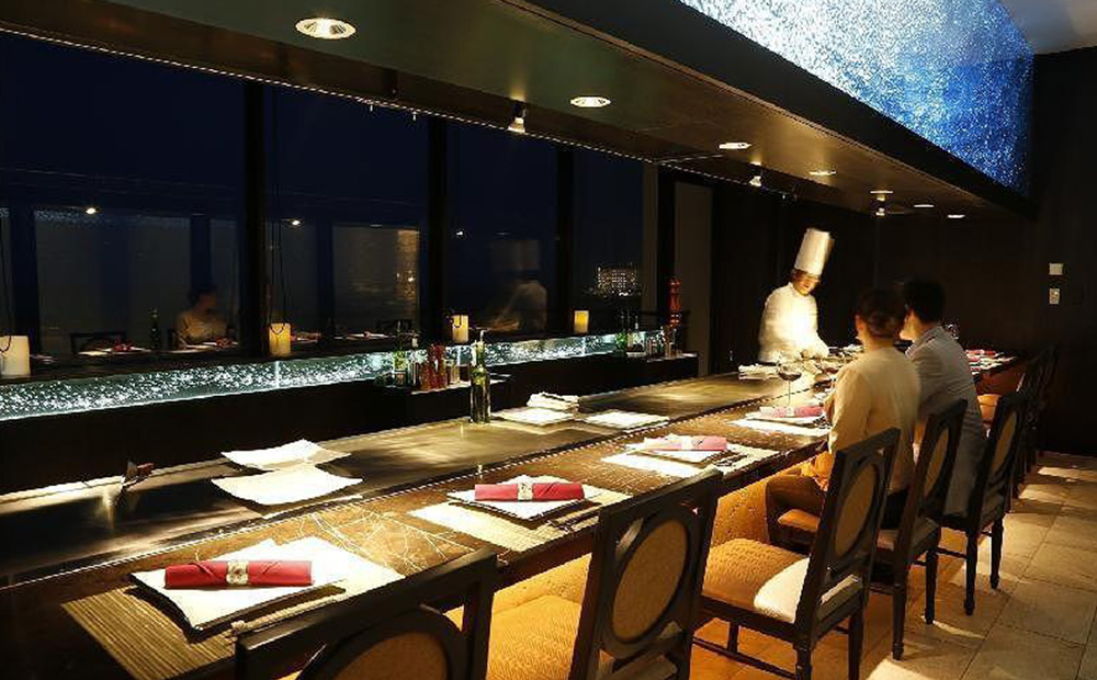 ホテル内5階に位置する鉄板焼「神戸」は、目の前で焼き上げる厳選された食材をお楽しみいただける、全16席のカウンタースタイルのレストラン。シェフとの会話を楽しみながら、大人のリゾートをご満喫いただけます。