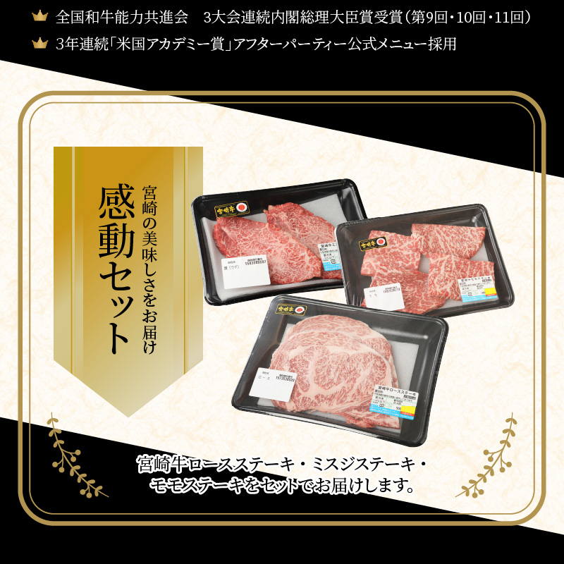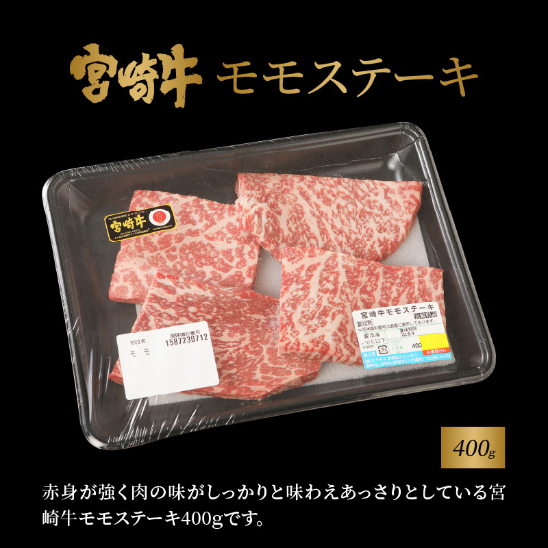赤身が強く肉の味がしっかりと味わえあっさりとしている宮崎牛モモステーキ400gのセットです。