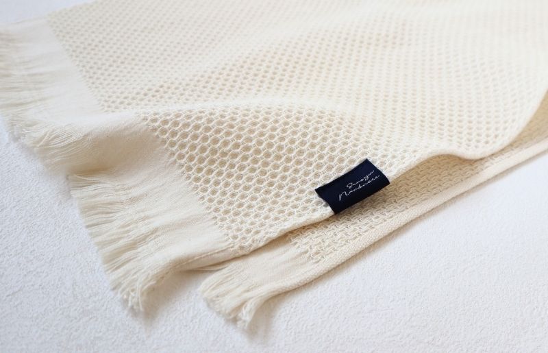 紙糸と綿糸との比率を試行錯誤し、紙糸らしいシャリっとした風合いと綿の風合いを共に生かしたタオルに仕上げました。