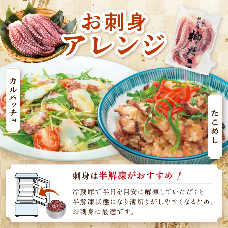 お刺身はもちろん、カルパッチョやたこめしなど様々料理でお楽しみいただけます♪