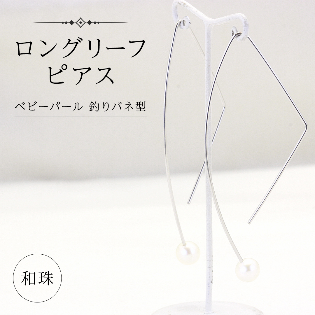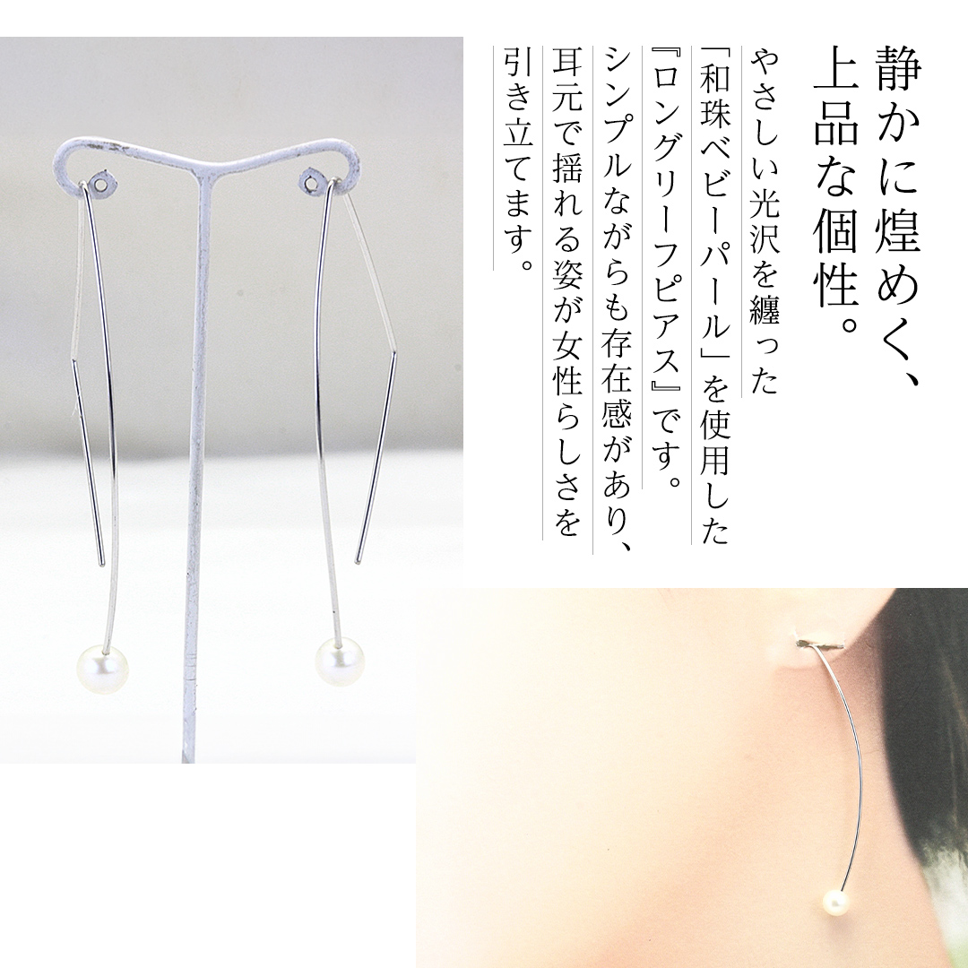 やさしい光沢を纏った「和珠ベビーパール」を使用した『ロングリーフピアス』です。