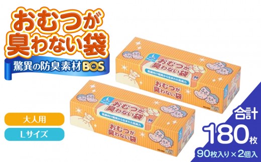 驚異の 防臭 袋 BOS おむつが臭わない袋 BOS 大人用 Lサイズ 90枚入り×2個セット 計180枚 | 日用品 消耗品 常備品 生活用品 まとめ買い ゴミ箱 ゴミ袋 ペット用品 日用消耗品 セット ふるさと 岡山 送料無料