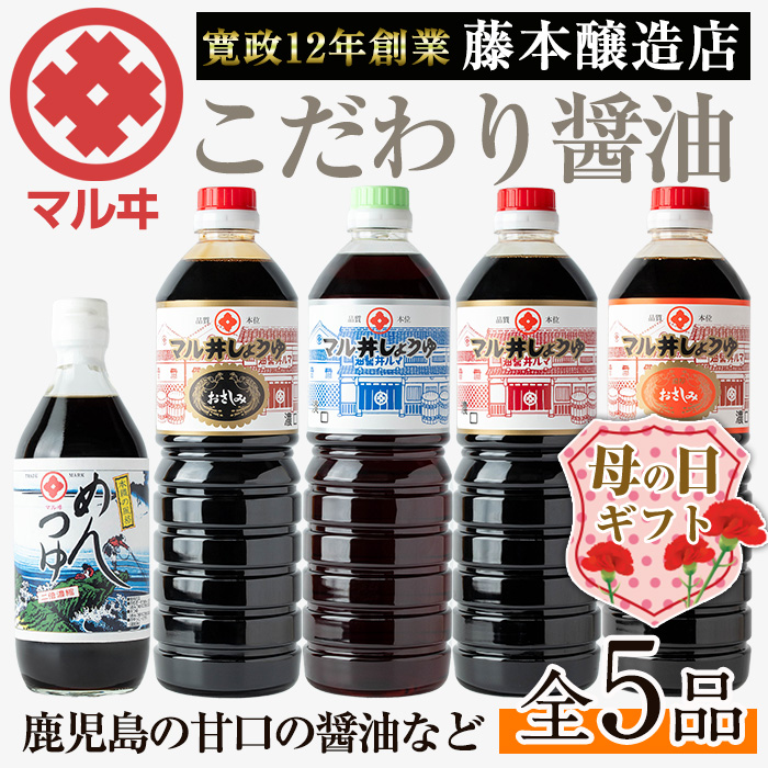 寛政12年創業の醤油屋が造る、こだわりの醤油を5本セットでお届けいたします。