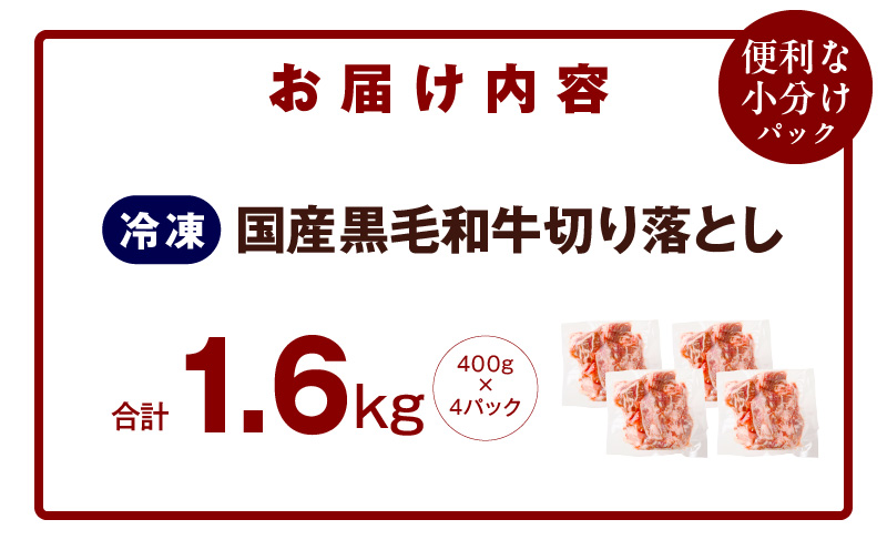 国産 黒毛和牛 切り落とし 合計1.6kg(400g×4パック)