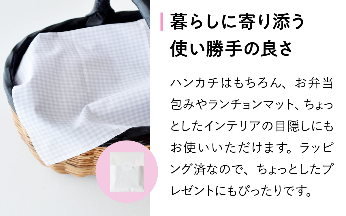 使い勝手が良いサイズでハンカチはもちろん、お弁当包みやランチョンマット、ちょっとしたインテリアの目隠しにもお使いいただけます。