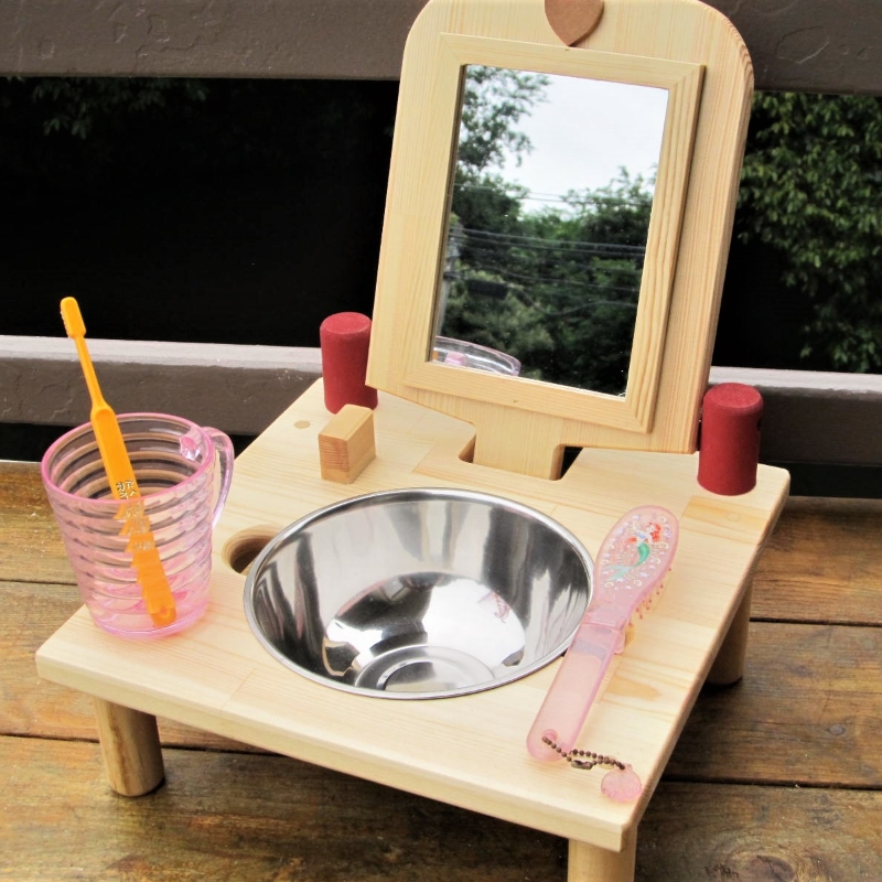 ( ふるさと納税 おもちゃ 手作り 木製 おままごと ドレッサー ミニドレッサー 鏡台 玩具 はみがき 練習 鏡 歯磨きトレーニング )
