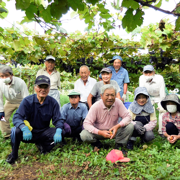 そこで梨棚を再利用し、ワインぶどうを栽培して街の特徴を生かしたオリジナルワインを作ろうと、2010年に農家、サラリーマン、主婦など26人で「八千代ワインチャレンジ会」を結成、翌年4月にワインぶどうの栽培を始めました。