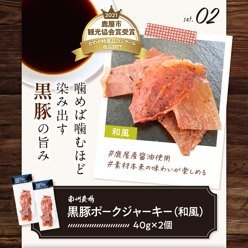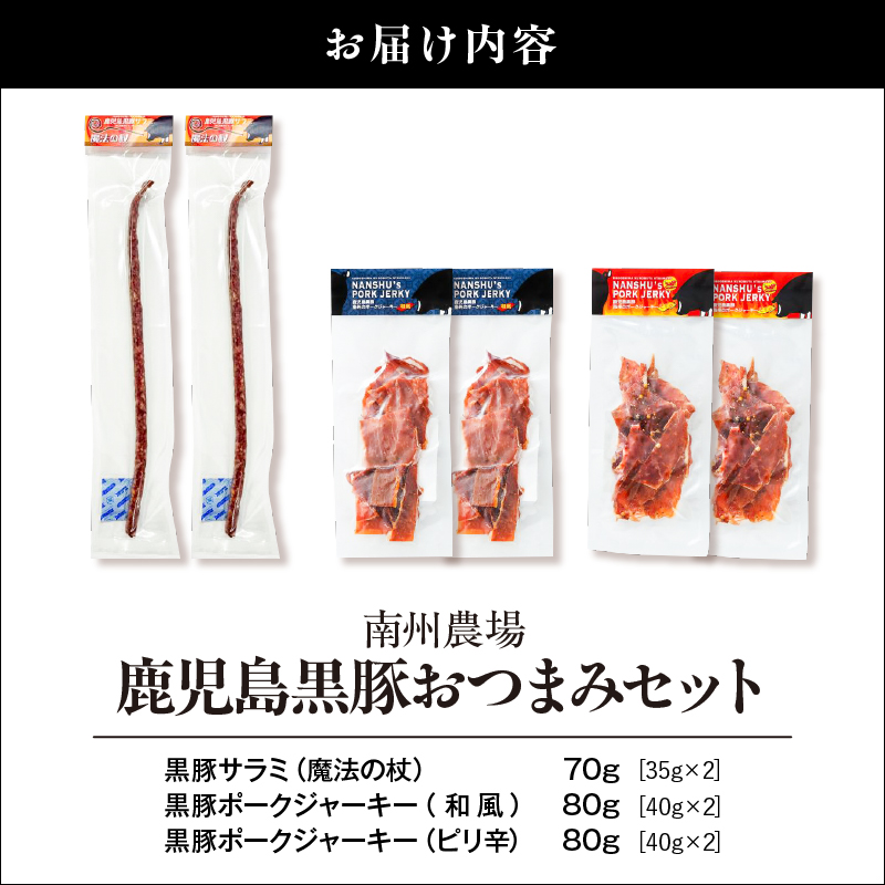 ポークジャーキー ジャーキー サラミ 黒豚ポークジャーキー 黒豚サラミ 和風 ピリ辛 おつまみ つまみ セット 加工食品 加工品 黒豚 豚肉 豚 肉加工品 スパイス スティック お酒のおつまみ 南州農場 ふるさと納税 鹿児島 鹿屋市 おすすめ ランキング プレゼント ギフト KN005-014