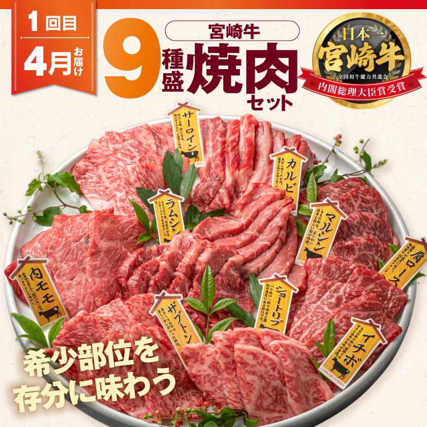 1回目(4月お届け):宮崎牛9種盛り焼肉セット