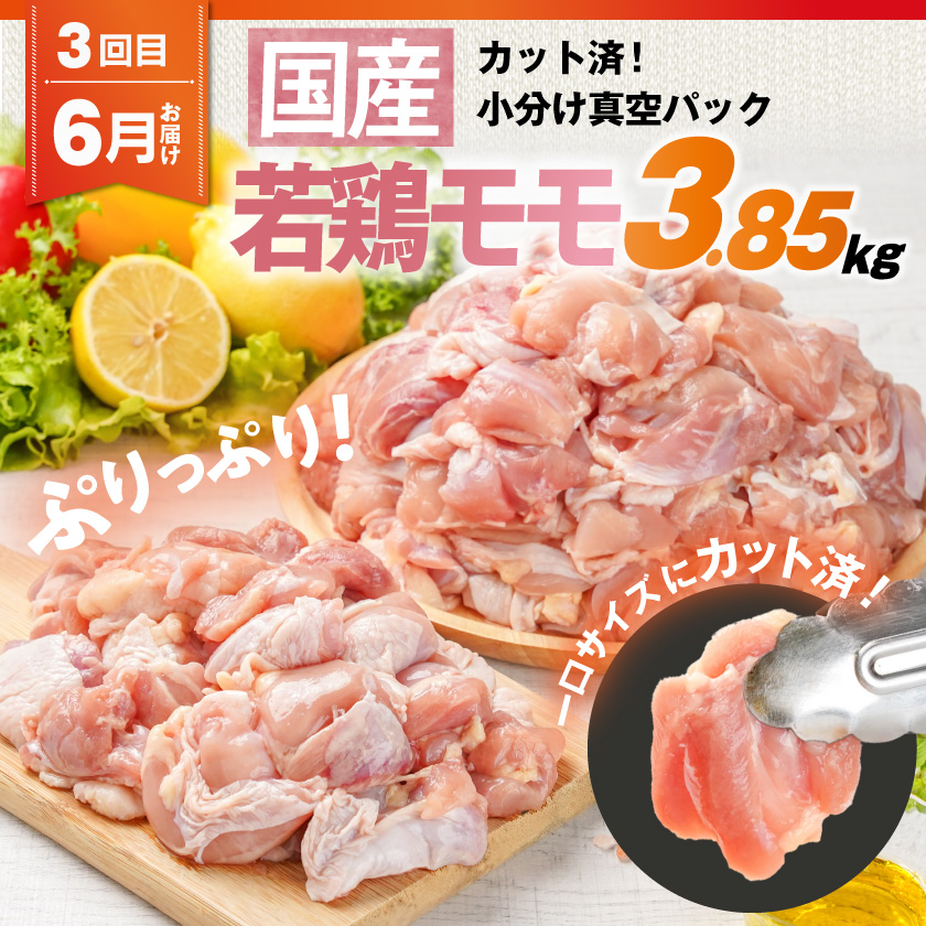 3回目(6月お届け):国産若鶏モモ3.85kg カット済!小分け真空パック