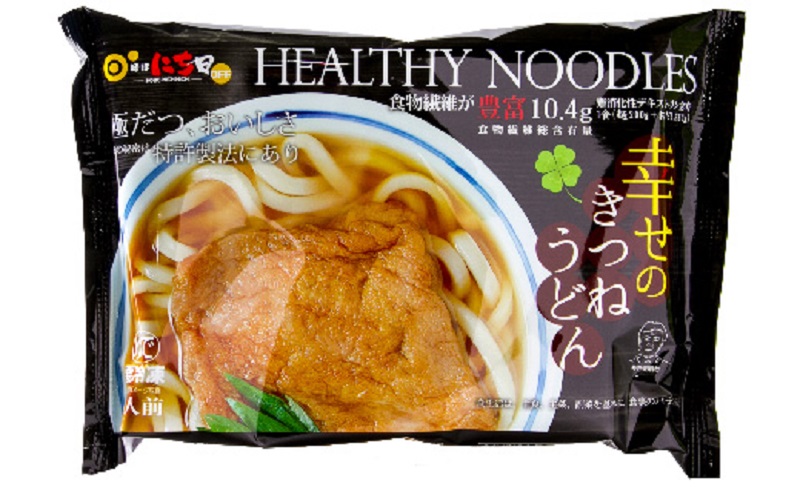 原材料:麺【小麦粉、難消化性デキストリン、食塩、小麦ブラン、フルボ酸調味料/加工でん粉】、だし【しょうゆ、風味原料(かつお節、さば節、うるめ節、昆布)果糖ぶどう糖液糖、食塩、醸造酢、砂糖/調味料(アミノ酸等)】、味付けあげ【油揚げ(大豆:遺伝子組み換えでない)、植物油、砂糖、しょうゆ、かつおエキス、煮干しエキス、酵母エキス/豆腐用凝固剤、調味料(アミノ酸)、ph調整剤】、(一部に小麦・大豆・さばを含む)