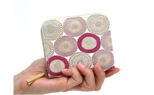【文庫屋大関】二つ折りファスナーミニ財布 笠菊<桃花>【皮革工芸品】財布 二つ折り 小物 お札 カード 小銭 コンパクト 牛革 手作り 日本製 墨田区 東京都 [№5619-2039]